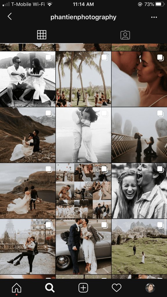 Oh, man! Tien is everything I want to be. I got to know his account through Henry. Tien is living in Vietnam at the moment. He has been posting many engagement and wedding photos in Vietnam which makes me miss my hometown so much. Looking at his Instagram’s feed, I want to get married. He draws the picture that love is real and investing in your wedding photo quality is the best thing ever.